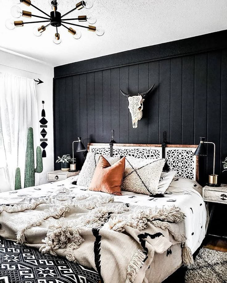 But while you might imagine boho bedroom decor is synonymous with vibrant colours and patterns, incorporating a hint of black can add a few flair and balance to the design. In the scheme, neutrals and timber are grounding calming base with edgy black photo frames and lampshades used as visual anchors. These small details provide comparison and a hobby without detracting from the playful, care-free aesthetic of the distance. Black touches thoughtfully integrated into boho bedroom decoration create team spirit and beauty, displaying that a creative, whimsical look can nonetheless thrive with a chunk of grounding.